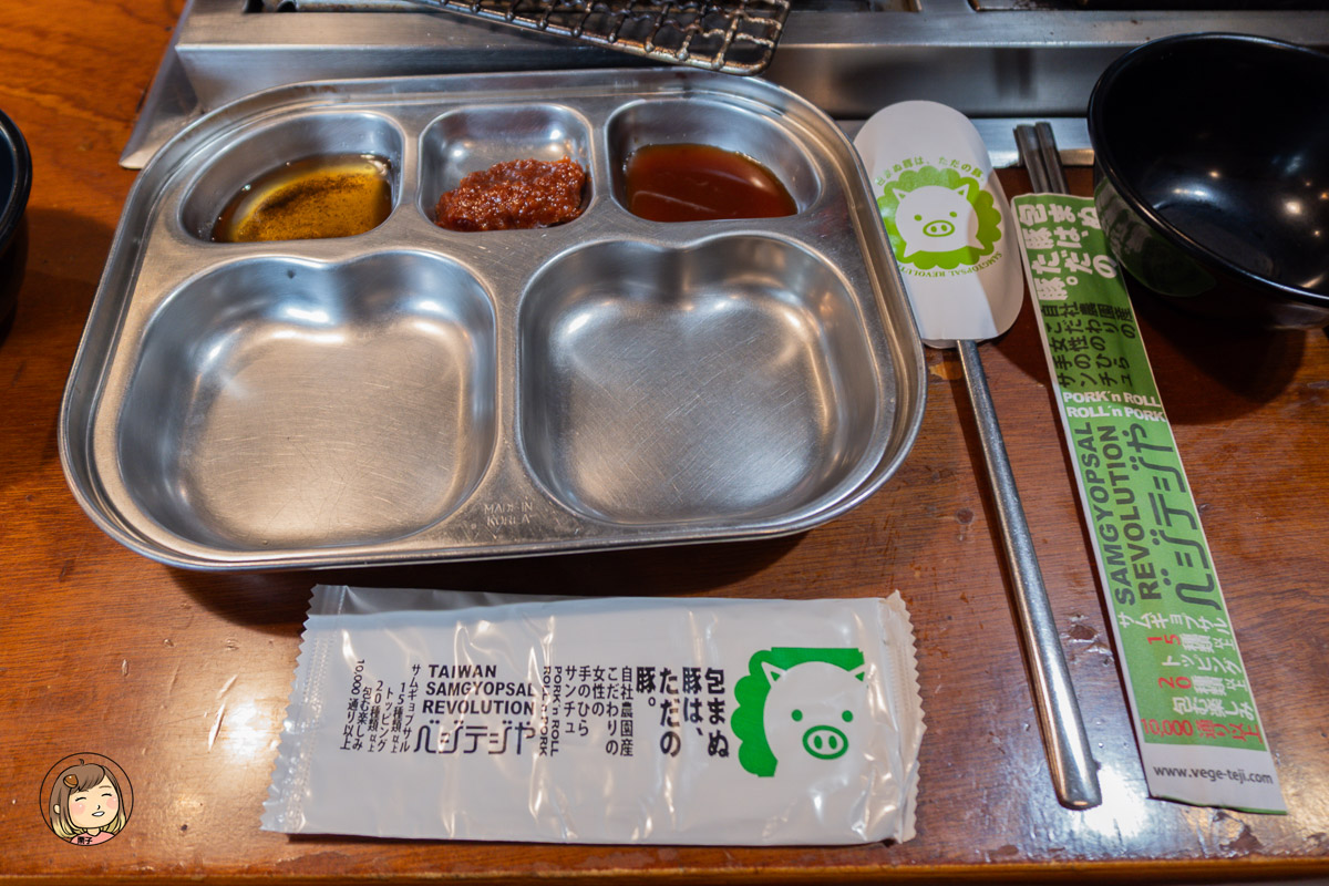 傳統的生菜包肉吃法你已經膩了嗎?在這裡你可以來點不一樣的!菜豚屋不只提供基本的蔬菜包法,還能搭配墨西哥餅皮、麻糬片,甚至不同風味的沾醬、泡菜、小菜,自由搭配變化超過千種吃法,根本是燒肉版的「DIY創意料理實驗室」,大家都可以混搭出不同的風格。