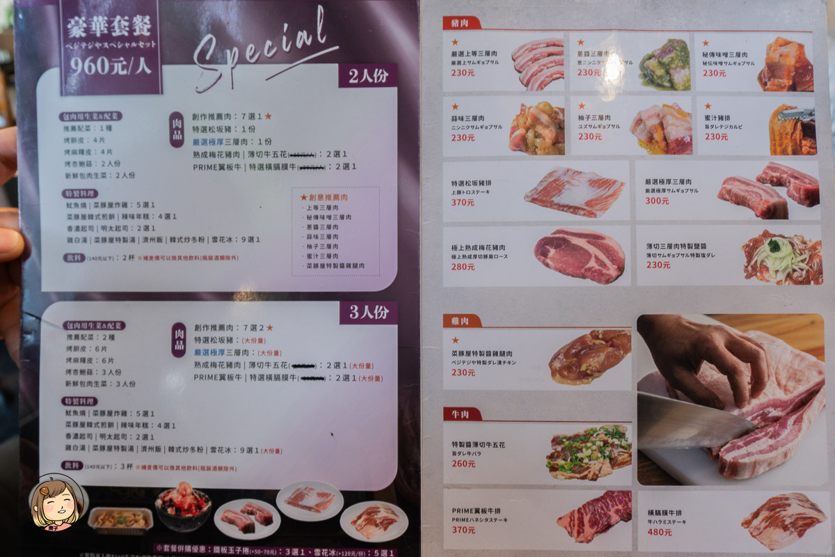 你可能沒想到,這間看起來主打韓式燒肉的【菜豚屋】,其實是由日本人開的品牌,最早創立於 2006 年的京都,以「生菜包肉」為主軸,將韓式料理結合日式講究與創意,推出了多款讓人眼睛一亮的創新吃法。從日本一路紅到台灣,現在台中、台北也能吃到這樣的獨特滋味,真的太幸福啦!