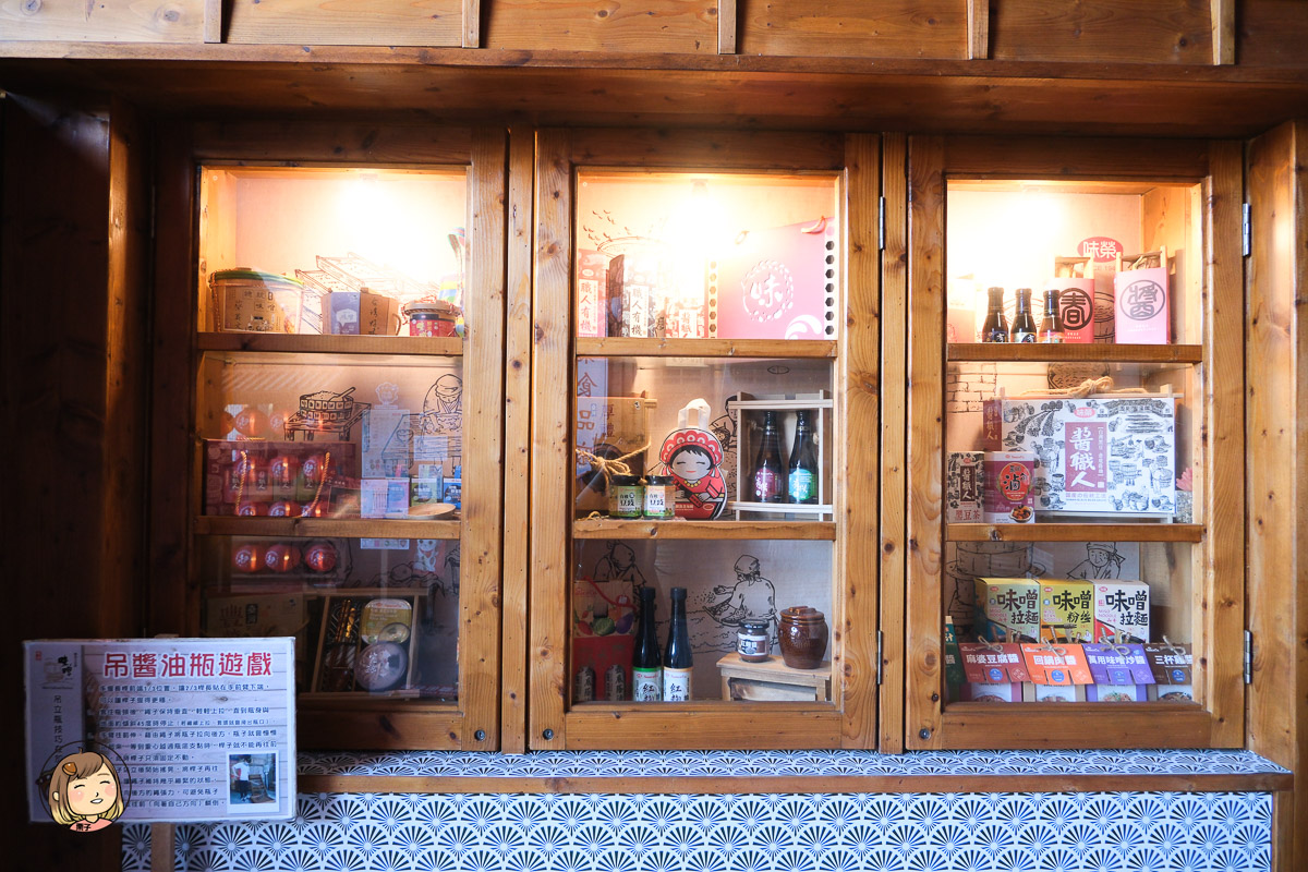 逛完文化館後,別忘了去「味榮柑仔店」走走!這裡將老柑仔店結合味榮的各式產品,有各種口味的味噌包裝、小瓶裝醬料、調味罐頭可以選購,也很適合作為伴手禮帶回家。店內還保留了復古磚牆、老櫃子,超有氣氛!買完還能當背景拍拍復古風照片~