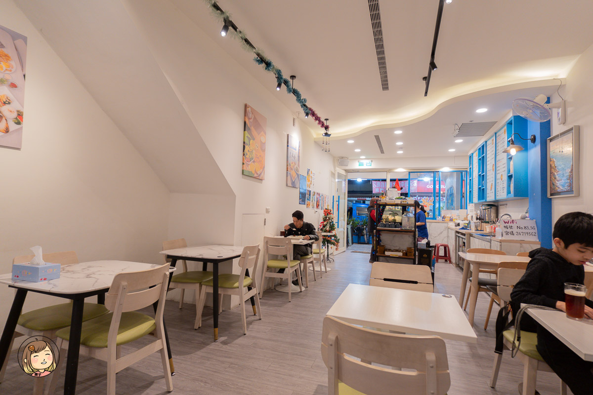 走進禾舍,就會被那大片藍白配色的裝潢吸引,藍色牆面搭配白色桌椅,簡單卻有濃濃的度假風。