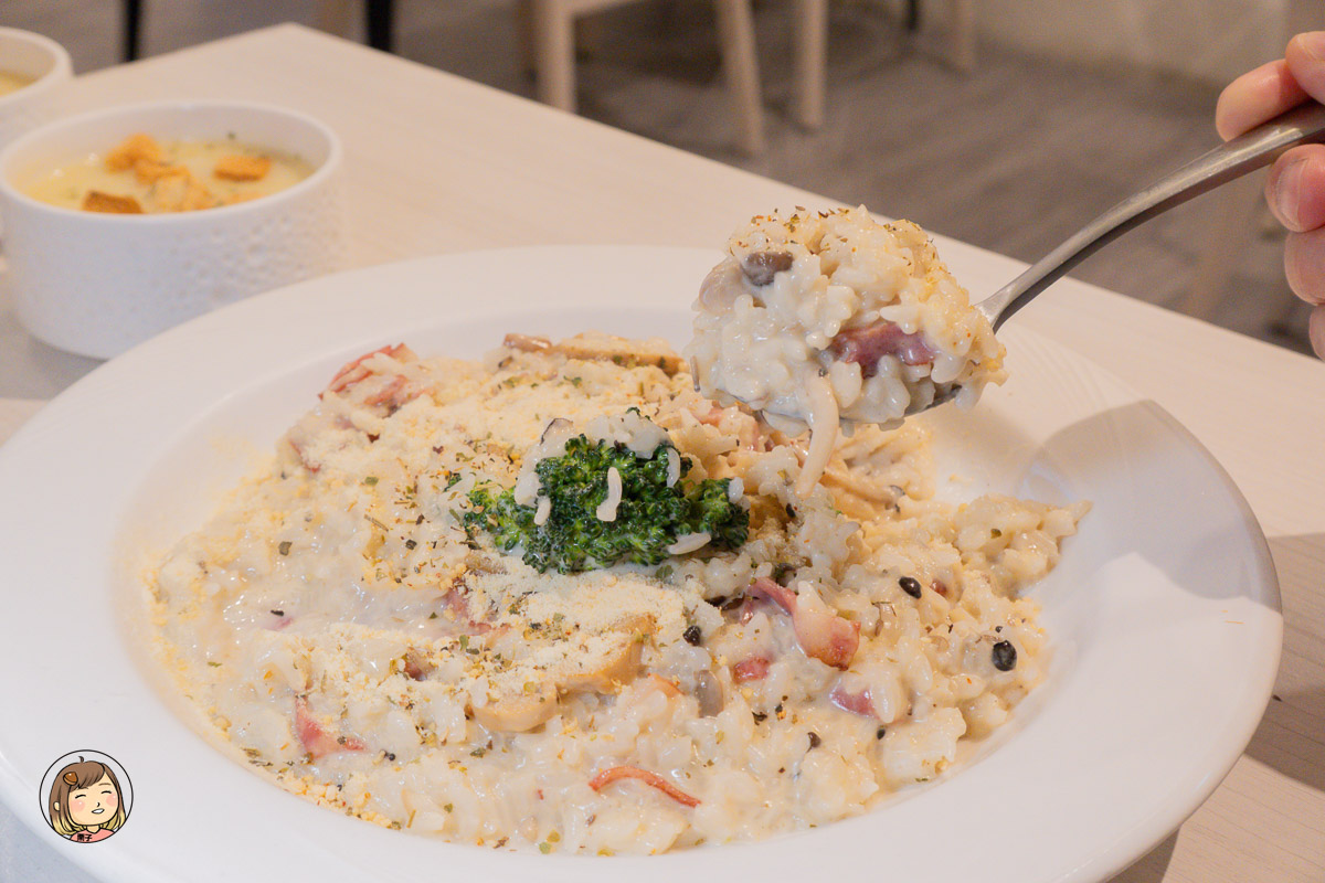 香氣十足的奶油醬汁包裹住每一粒米飯,搭配濃郁的起司香與炒香的培根,整體味道飽滿卻不膩口,熱騰騰上桌時香氣四溢。