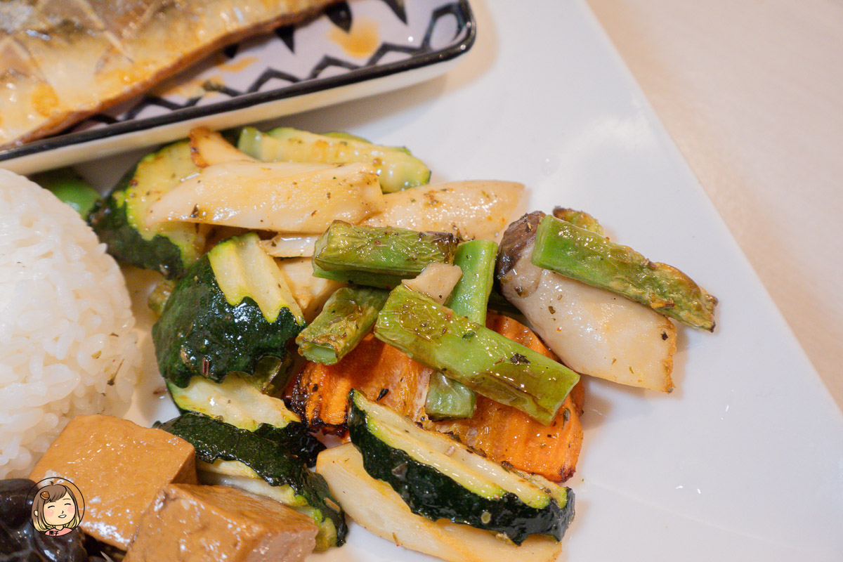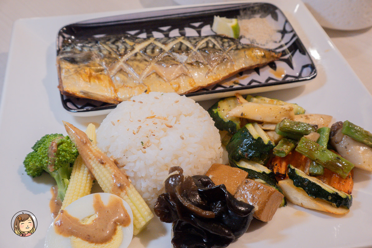 旁邊還附上豐盛的蔬菜與沙拉,一整盤份量十足又色彩繽紛。