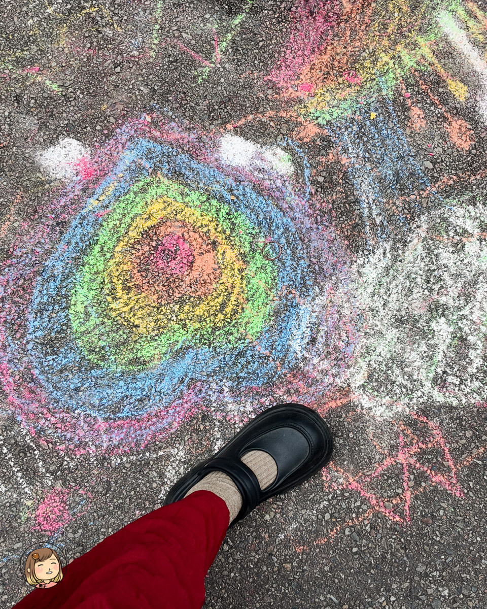 一到活動現場,最吸睛的莫過於那一條條彩繪馬路啦~不同於一般地景塗鴉,這裡採用粉筆彩繪的方式,既環保又無損地面,讓大家能盡情揮灑創意。你也可以現場報名參加,和小朋友一起畫下專屬自己的「鈴蘭通記憶」