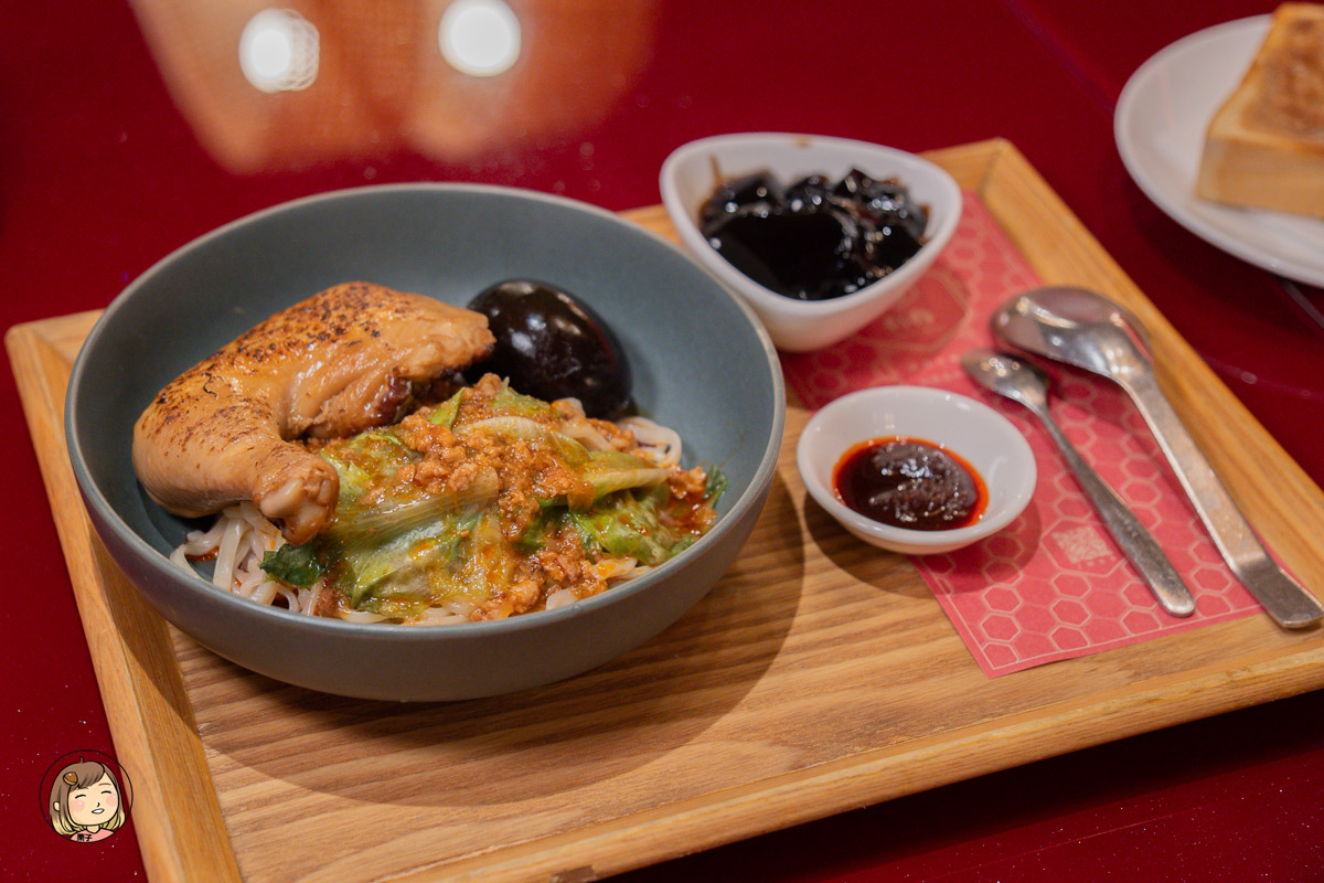 皮蛋可以單吃,也可以拌進麵條中,讓每一口麵都裹上皮蛋的濃郁與滑潤,非常特別的搭配!雞腿超大一支,外皮微酥、肉質細嫩,肉控一定會愛死!