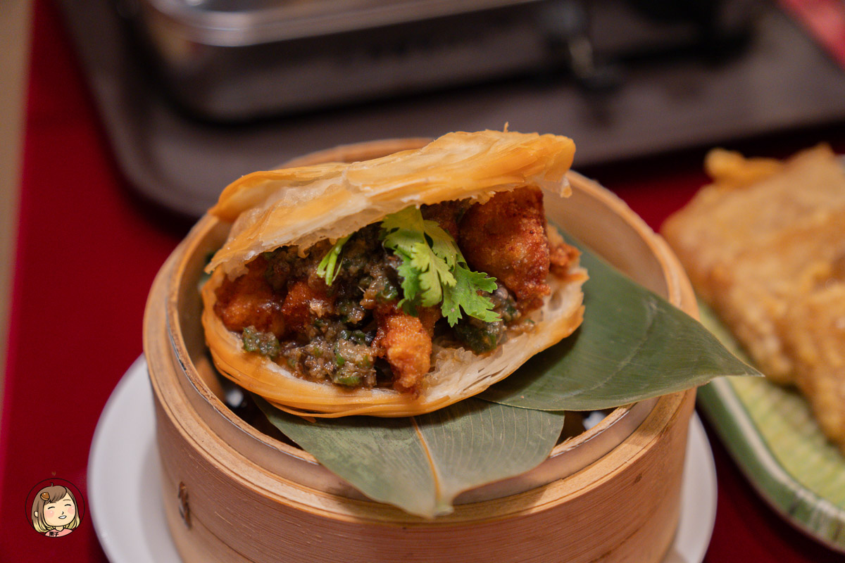 一口咬下去先感受到酥脆的外殼,像是燒餅掉渣那樣的酥鬆感,裡頭塞滿了大塊雞腿肉,再搭配帶顆粒感的皮蛋醬,濃郁鹹香又不膩。