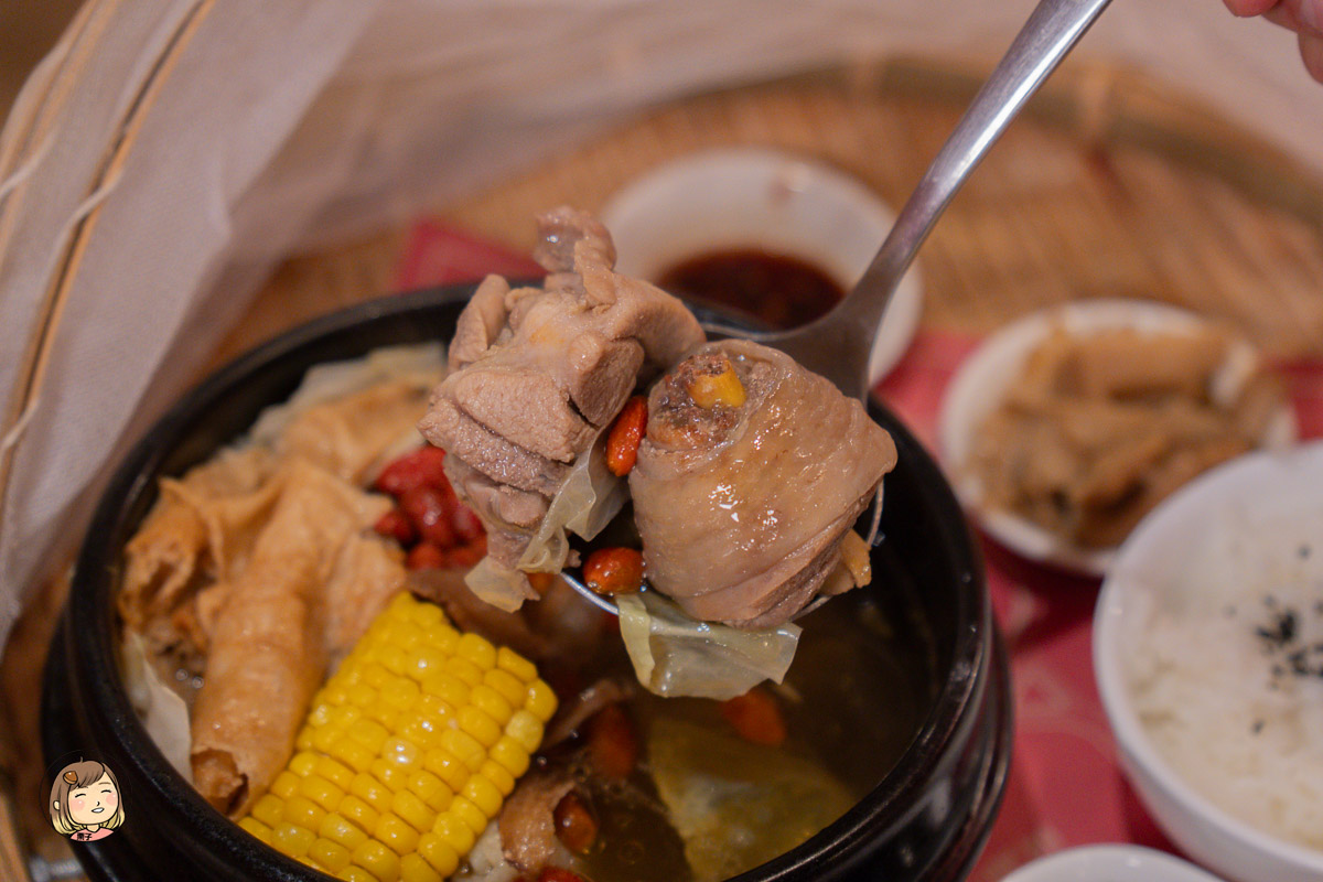 雞腿肉燉得軟嫩入味,搭配豆皮、米血、青菜,還有湯裡若有似無的枸杞甜味,是溫補又暖胃的好選擇!