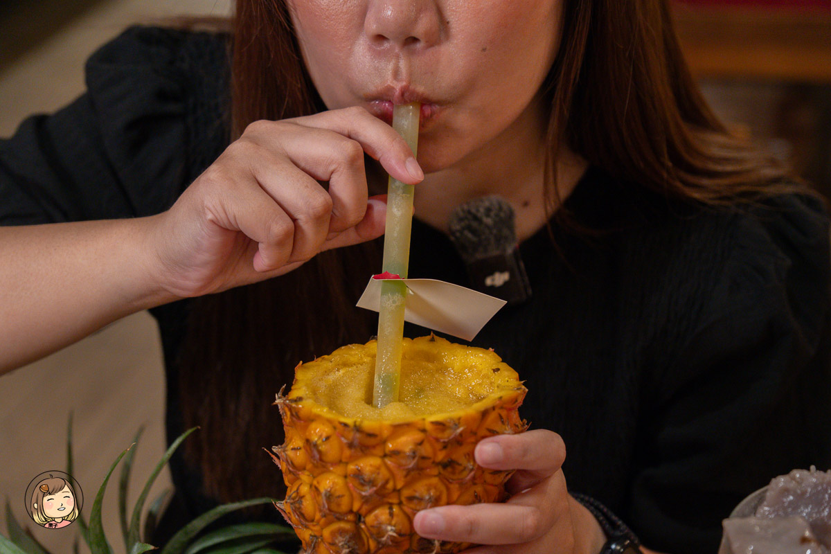 視覺超震撼,一整顆鳳梨被挖空,上桌的瞬間就是全場焦點!果昔細緻滑順,酸甜平衡得恰到好處,喝起來透心涼~