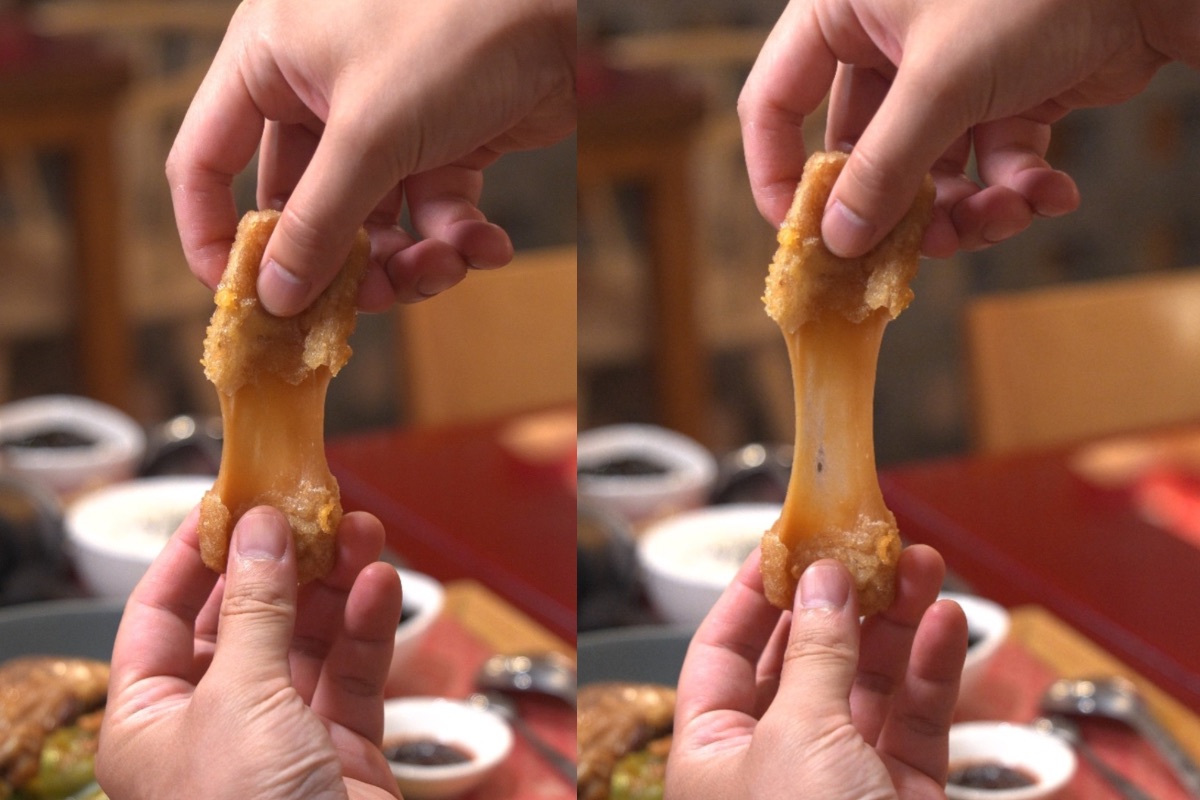 炸年糕外層金黃酥脆,內裡Q黏有彈性,搭配上香氣十足的麵茶粉,有種過年才吃得到的懷舊感。